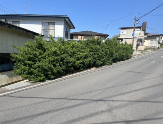 天理市のお客様から「生垣が道路にはみ出して通行の人に迷惑になりそうなので整えてほしい」とご相談がありました。